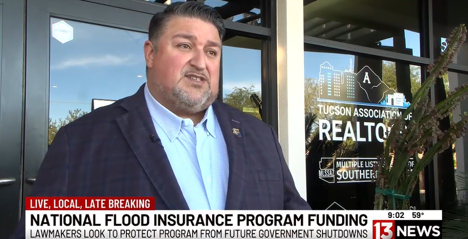 The KOLD 13 News segment highlights how potential lapses in the National Flood Insurance Program (NFIP) create serious challenges for homebuyers, homeowners, and the real estate market. Romeo Arrieta, CEO of the Tucson Association of REALTORS®, explains that repeated short-term extensions and the threat of government shutdowns lead to widespread delays in home sales — nearly 1,400 a day nationwide and close to 20 a day in Arizona.