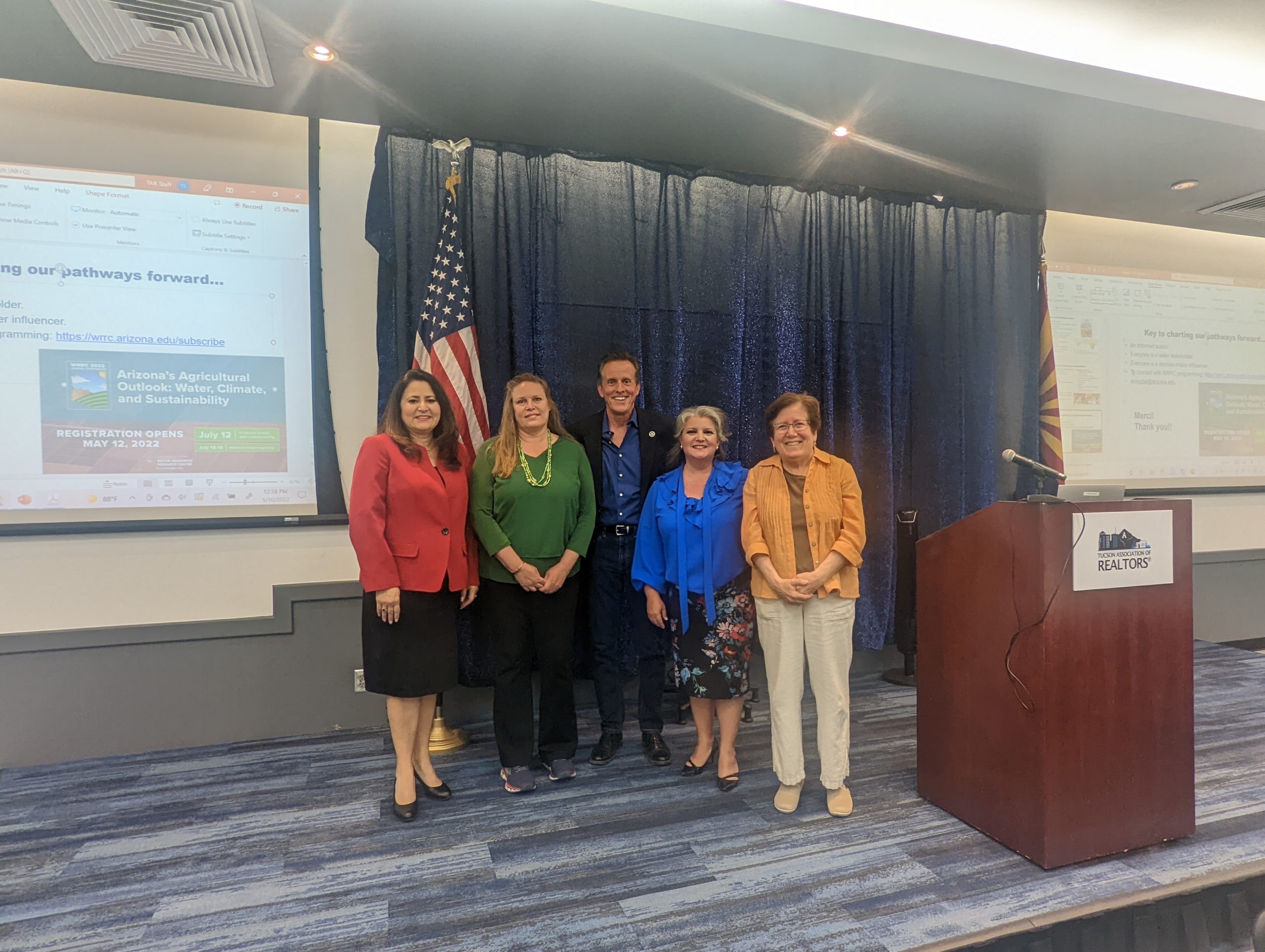 On Tuesday, May 10, 2022, 0ver 150 attendees heard all about Water in Southern Arizona: What Real Estate Professionals Need to Know. The panel included Lea Marquez-Peterson, Chairwoman-Arizona Corporation Commission, Elizabeth Leibold P.E, CPM, CFM, Storm Water Management and Flood Plain Administration, Gary Brasher, Ground Water User board for Santa Cruz County and Sharon B. Megdal, Ph.D, Director, Water Resources Research Center (WRRC). This was a very lively and interesting topic relevant for all.